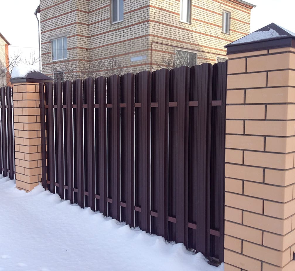Заборы и ограждения из евроштакетника с кирпичными столбами 90 метров в Химках