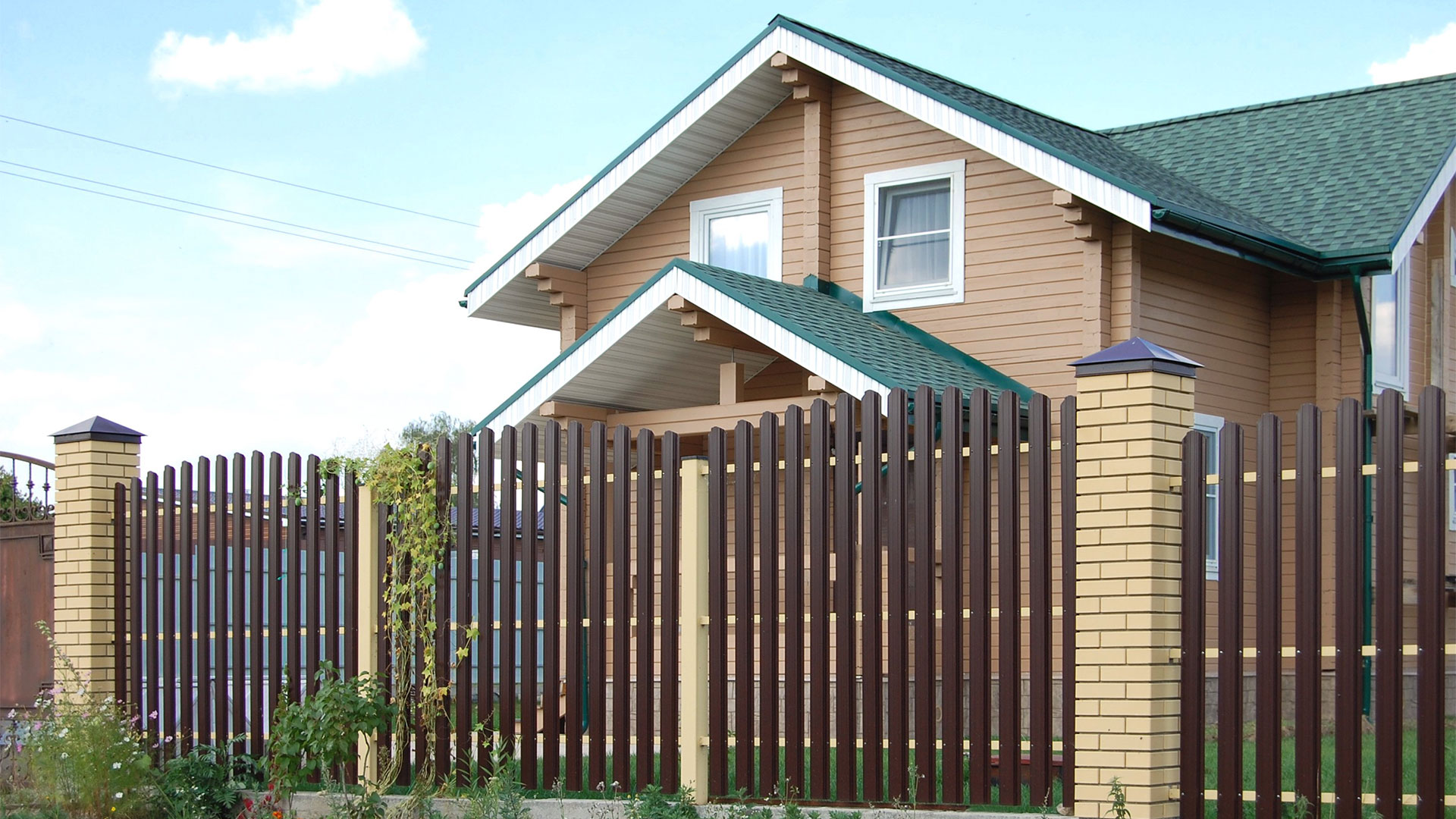 Заборы и ограждения из евроштакетника с кирпичными столбами 30 соток в Химках