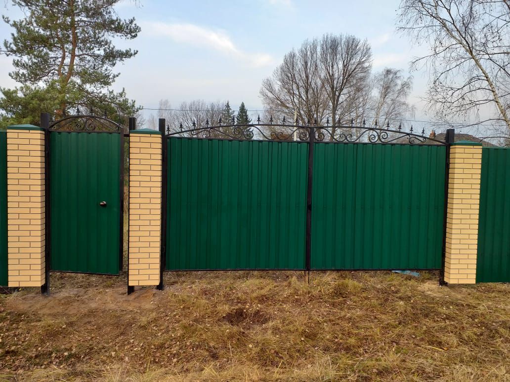 Заборы и ограждения из профнастила с кирпичными столбами 100 метров в Химках