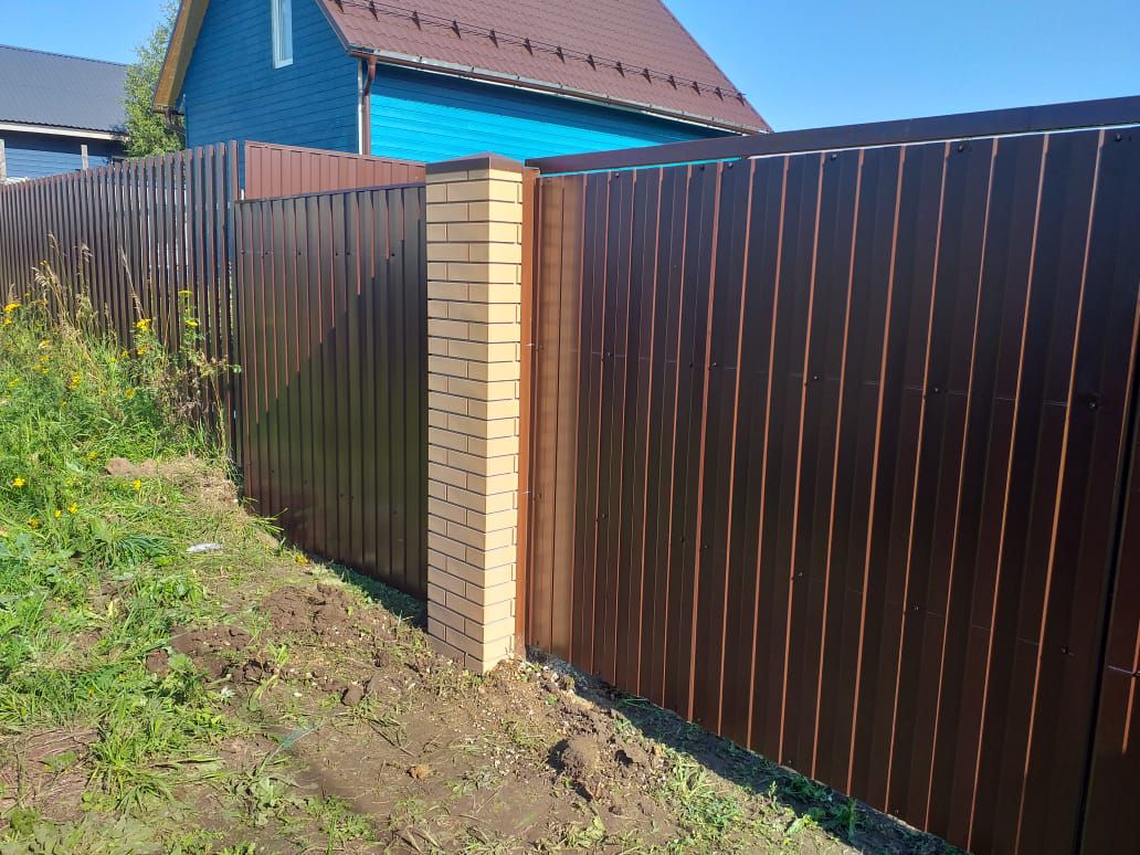 Заборы и ограждения из профнастила с кирпичными столбами 50 метров в Химках